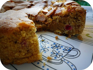 Este bolo surgiu porque quando vi as framboesas frescas à venda no supermercado, apeteceu-me fazer um bolo com elas. Adaptei um pouco esta receita e o resultado, segundo o miúdo mais velho, na sua excitação tão típica de quem experimenta quase tudo pela primeira vez,  "é o melhor bolo do mundo". Assim, até ele provar o próximo, este é o melhor bolo do mundo lá por casa.